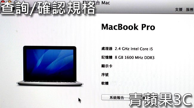 ▲我們會先查詢此macbook的規格、再來會查看此筆電的外觀有無明顯損傷之類的